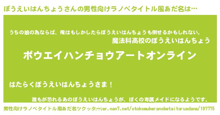 | 女子向けラノベタイトル風あだ名 | 『ぼうえいはんちょう姫と円卓の騎士』 |