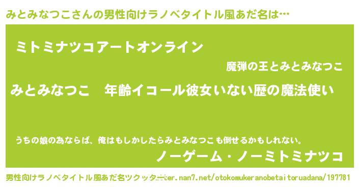 | ヒーロー風カッコイイあだ名 | 『スーパーミトミナツコ』『仮面ミトダー』 |