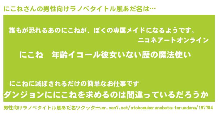 | 女子向けラノベタイトル風あだ名 | 『にこねの玉の輿計画!』 |
