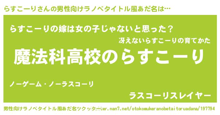 | 意味不明あだ名 | 『自称らすこーり』『永久保存らすこーり』 |