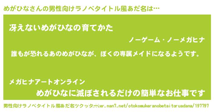 | 女子向けラノベタイトル風あだ名 | 『異世界でカフェめがひなを開店しました。』 |