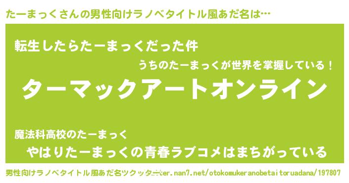 | 意味不明あだ名 | 『ペロリンたーまっく』『自称たーまっく』 |