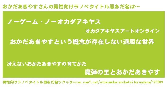 | 意味不明あだ名 | 『永久保存おかだあきやす』 |