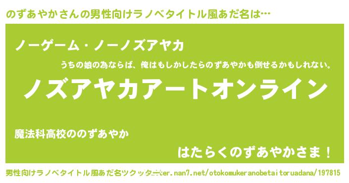 | 恥ずかしいあだ名 | 『プリティーのずあやか』『のずっちょ』 |