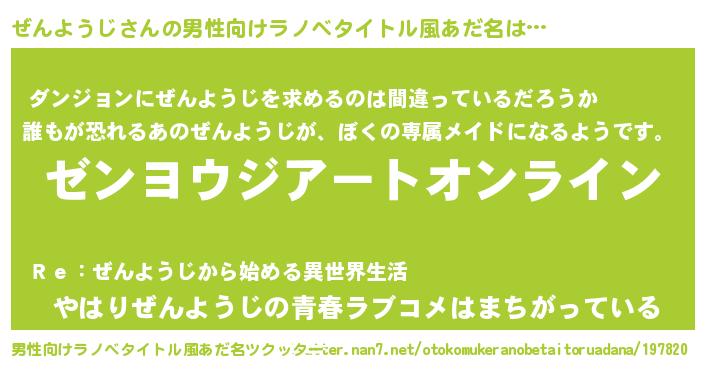 | 意味不明あだ名 | 『ペロリンぜんようじ』『自称ぜんようじ』 |