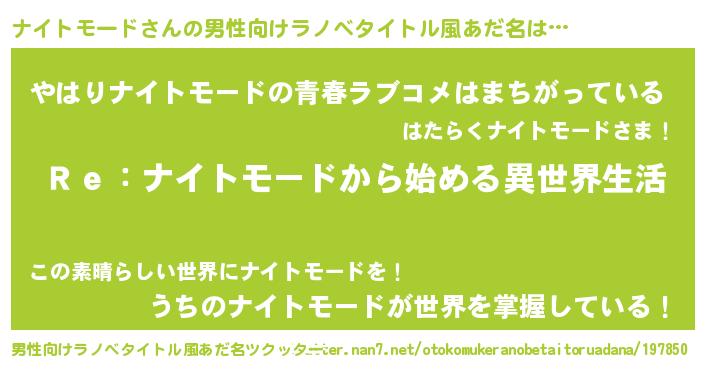 | 女子向けラノベタイトル風あだ名 | 『ナイトモードストレイドッグス』 |