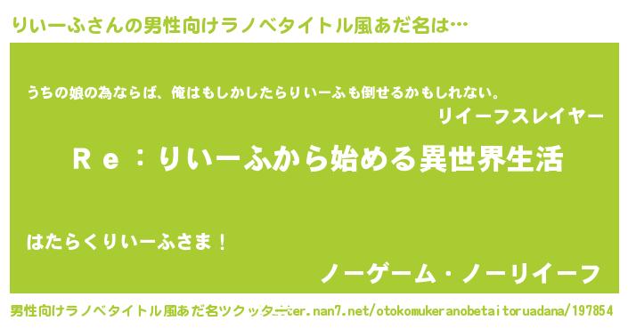 | 意味不明あだ名 | 『自称りいーふ』『りいーふフォーエバー』 |
