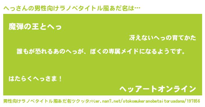 | 女子向けラノベタイトル風あだ名 | 『へっの契約王妃』『首の姫と首なしへっ』 |