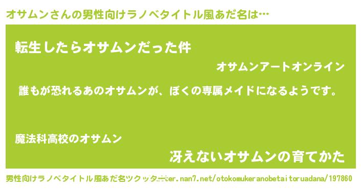 | 胡散臭い通販商品みたいなあだ名 | 『前代未聞の健康食品…その名も「オサムン」』 |