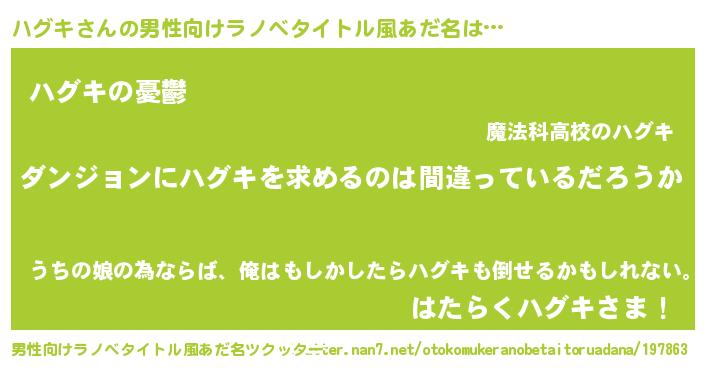 | 意味不明あだ名 | 『とにかく怪しいハグキ』『自称ハグキ』 |