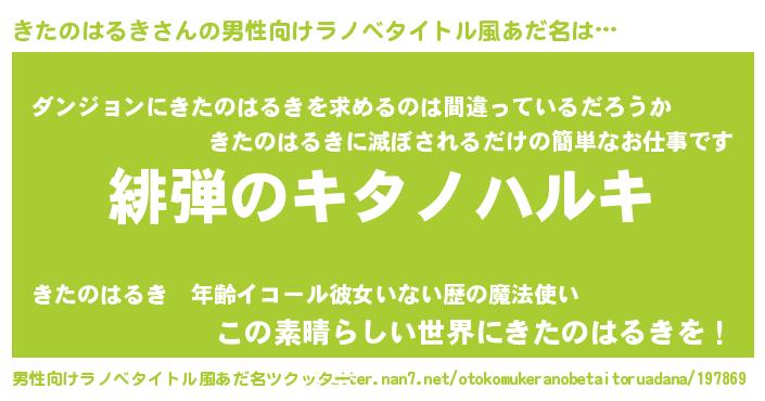 | 胡散臭い通販商品みたいなあだ名 | 『信頼と実績のペンダント…その名も「きたのはるき」』 |