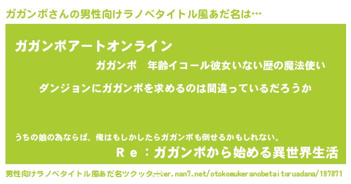 | 胡散臭い通販商品みたいなあだ名 | 『伝統あるサプリメント…その名も「ガガンボ」』 |