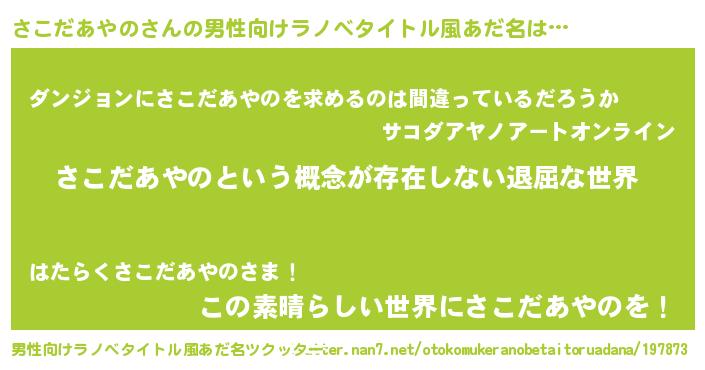 | 女子向けラノベタイトル風あだ名 | 『異世界で失敗しない100のさこだあやの』 |
