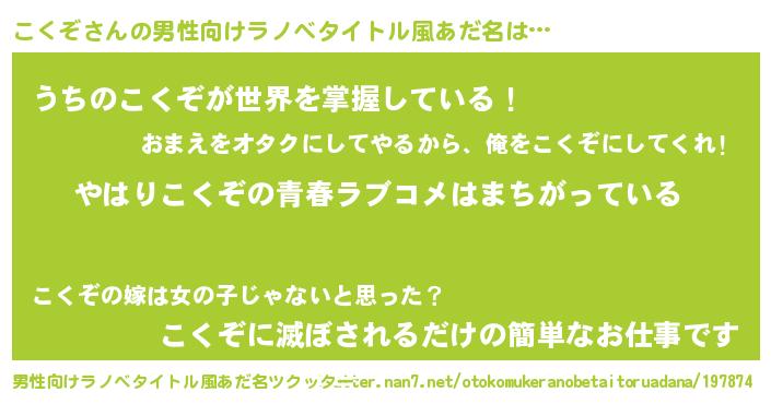 | ヒーロー風カッコイイあだ名 | 『ウルトラこくぞマン』『幻影騎士コク』 |