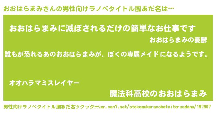 | 女子向けラノベタイトル風あだ名 | 『異世界でカフェおおはらまみを開店しました。』 |