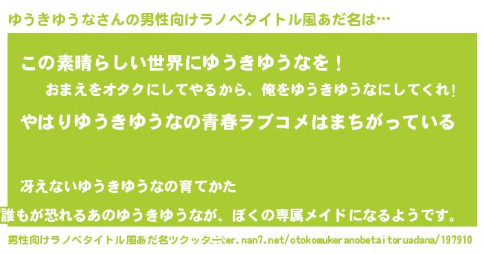 | ファンタジー風あだ名 | 『エターナルユウキユウナー』 |