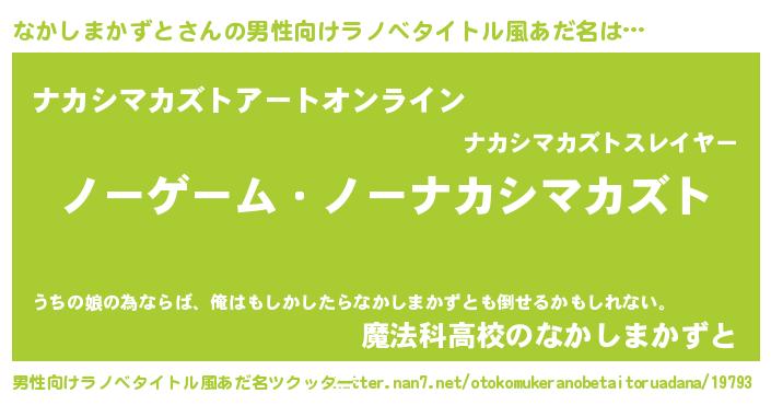 | 女子向けラノベタイトル風あだ名 | 『死神なかしまかずとの再婚』 |