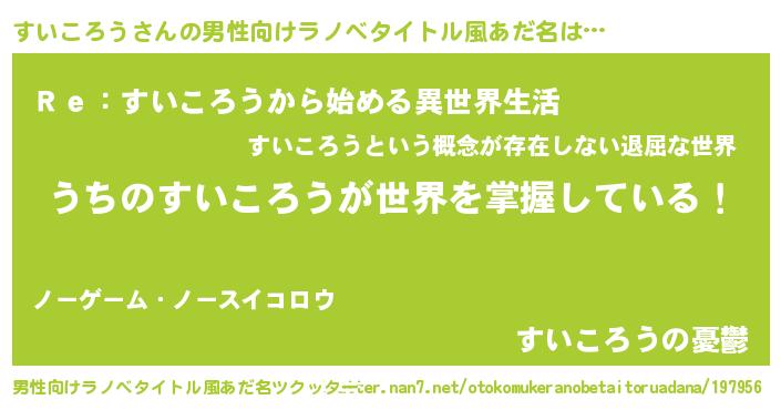 | 意味不明あだ名 | 『自称すいころう』『ペロリンすいころう』 |