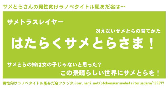 | 女子向けラノベタイトル風あだ名 | 『首の姫と首なしサメとら』 |