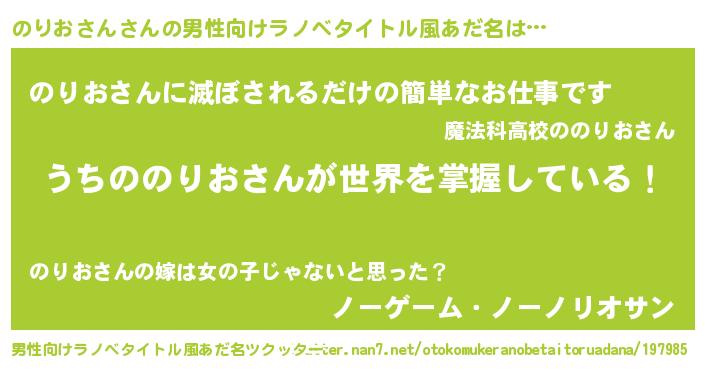 | ヒーロー風カッコイイあだ名 | 『慈愛の使者のりおさん』『黄金騎士ノリ』 |