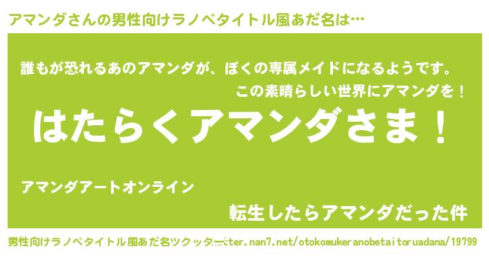 | 胡散臭い通販商品みたいなあだ名 | 『絶対に幸福をもたらす健康食品…その名も「アマンダ」』 |
