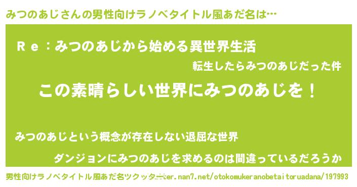 | 意味不明あだ名 | 『住所不定無職みつのあじ(59歳)』 |