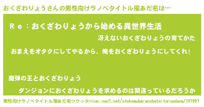 | 女子向けラノベタイトル風あだ名 | 『おくざわりょう夫妻のなれそめ』 |