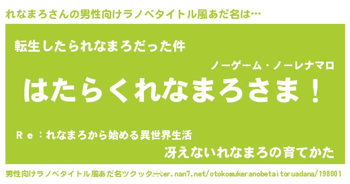 | 意味不明あだ名 | 『しいたけ科れなまろ属』『自称れなまろ』 |