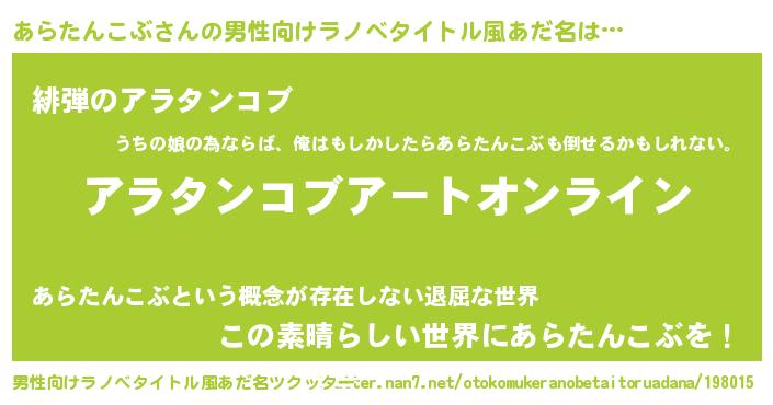 | 胡散臭い通販商品みたいなあだ名 | 『モテモテ間違いなしブレスレット…その名も「あらたんこぶ」』 |