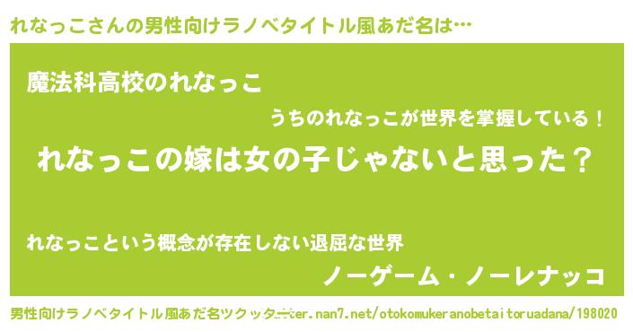 | 意味不明あだ名 | 『とにかく怪しいれなっこ』 |