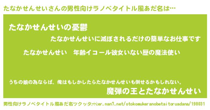 | 女子向けラノベタイトル風あだ名 | 『たなかせんせいの玉の輿計画!』 |