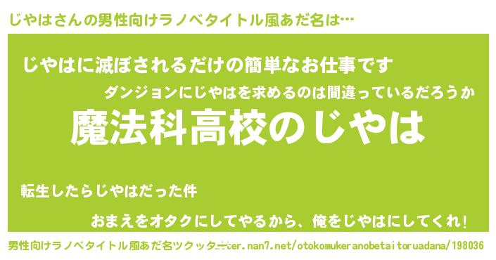 | 女子向けラノベタイトル風あだ名 | 『じやはなんてお断りですっ。』 |