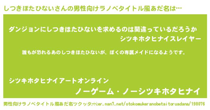| 胡散臭い通販商品みたいなあだ名 | 『前代未聞の水素水…その名も「しつきほたひない」』 |