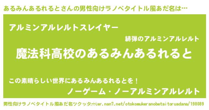 | 伝説のあだ名 | 『人々から恐れられる錬金術士あるみんあるれると』 |