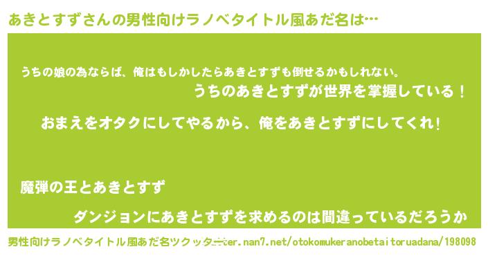 | 女子向けラノベタイトル風あだ名 | 『あきとすず夫妻のなれそめ』 |