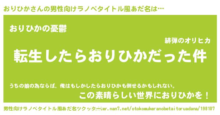 | ヒーロー風カッコイイあだ名 | 『スーパーオリヒカ』『仮面オリダー』 |