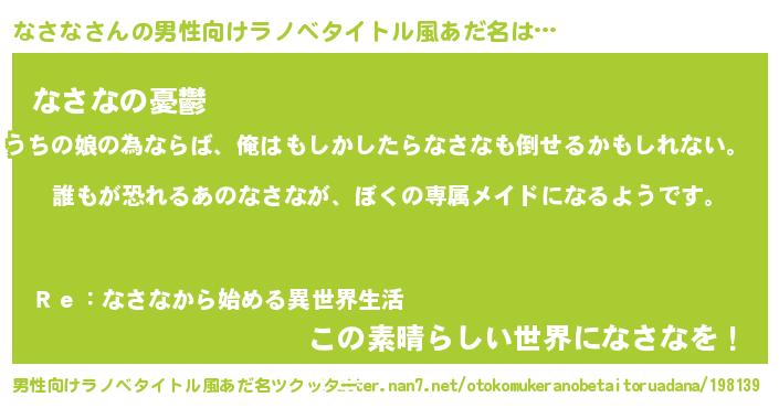 | 胡散臭い通販商品みたいなあだ名 | 『前代未聞の水素水…その名も「なさな」』 |