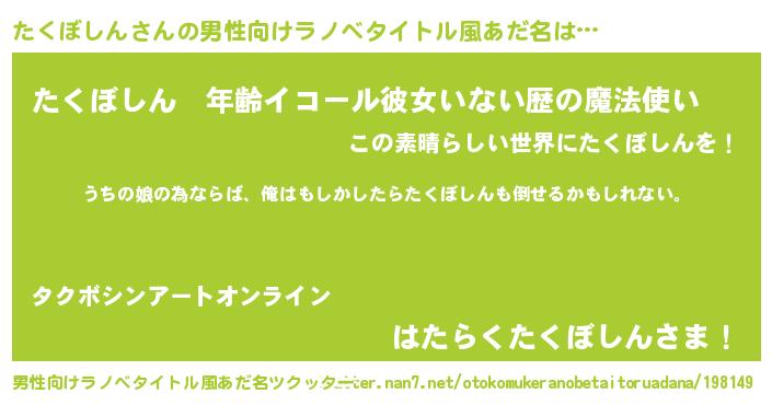 | 女子向けラノベタイトル風あだ名 | 『たくぼしん伯爵の花嫁』 |