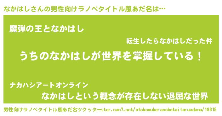 | 意味不明あだ名 | 『住所不定無職なかはし(59歳)』 |
