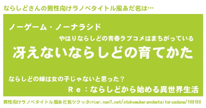 | ヒーロー風カッコイイあだ名 | 『愛の使者ならしど』『究極戦士ナラシド』 |