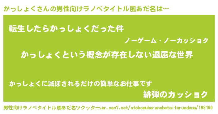 | 胡散臭い通販商品みたいなあだ名 | 『絶対に幸福をもたらす健康食品…その名も「かっしょく」』 |
