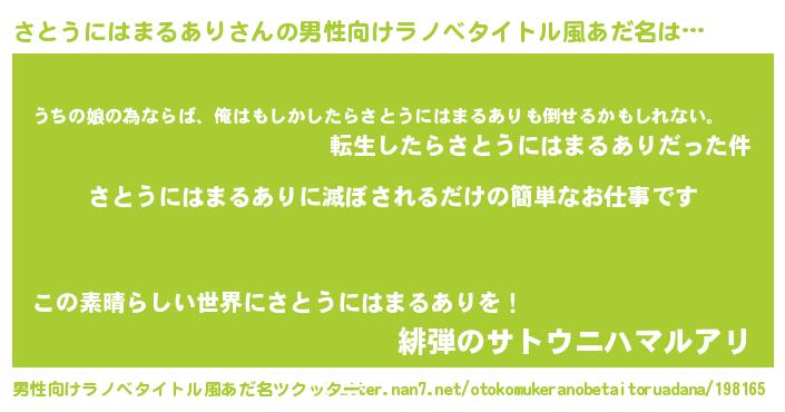 | 胡散臭い通販商品みたいなあだ名 | 『運命の人と巡り会える高級そうな絵画…その名も「さとうにはまるあり」』 |