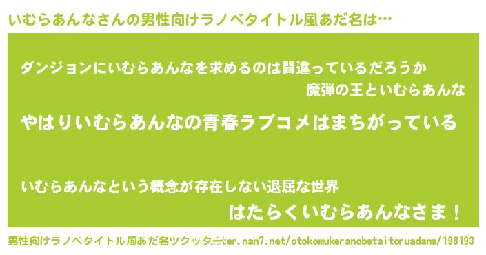 | 女子向けラノベタイトル風あだ名 | 『いむらあんなの雑貨屋さん』 |