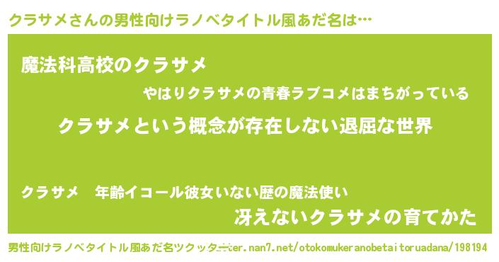 | 胡散臭い通販商品みたいなあだ名 | 『絶対に幸福をもたらす健康食品…その名も「クラサメ」』 |