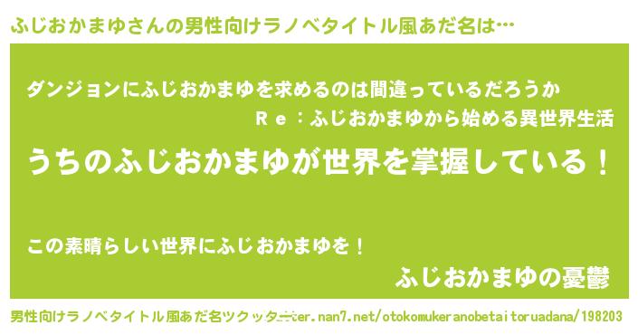 | 意味不明あだ名 | 『とにかく怪しいふじおかまゆ』 |