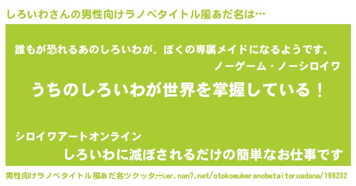 | ヘコむあだ名 | 『しろいわ(笑)』『しろにゅー』 |
