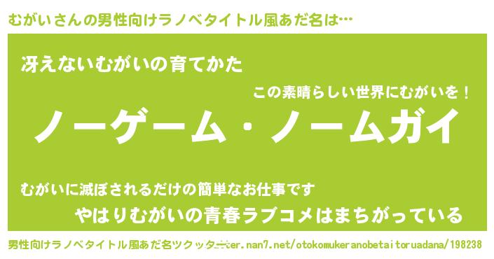 | 女子向けラノベタイトル風あだ名 | 『死神むがいの再婚』『むがい伯爵の花嫁』 |