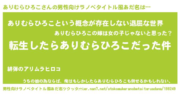 | 伝説のあだ名 | 『古より伝わる吟遊詩人ありむらひろこ』 |