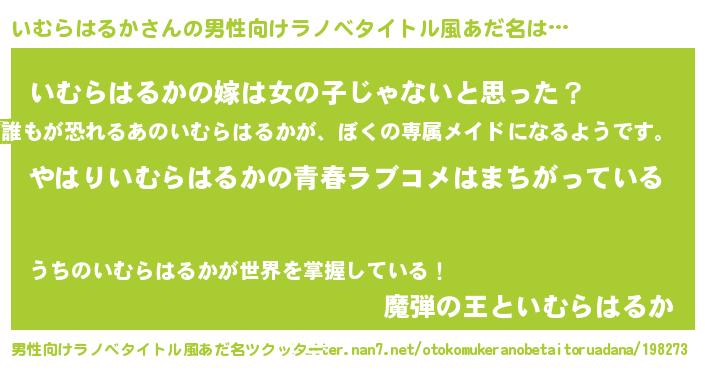 | 女子向けラノベタイトル風あだ名 | 『いむらはるかの雑貨屋さん』 |