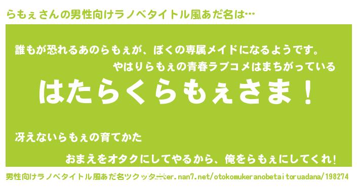 | ヘコむあだ名 | 『らもぇ(苦笑)』『酢こんぶ』 |